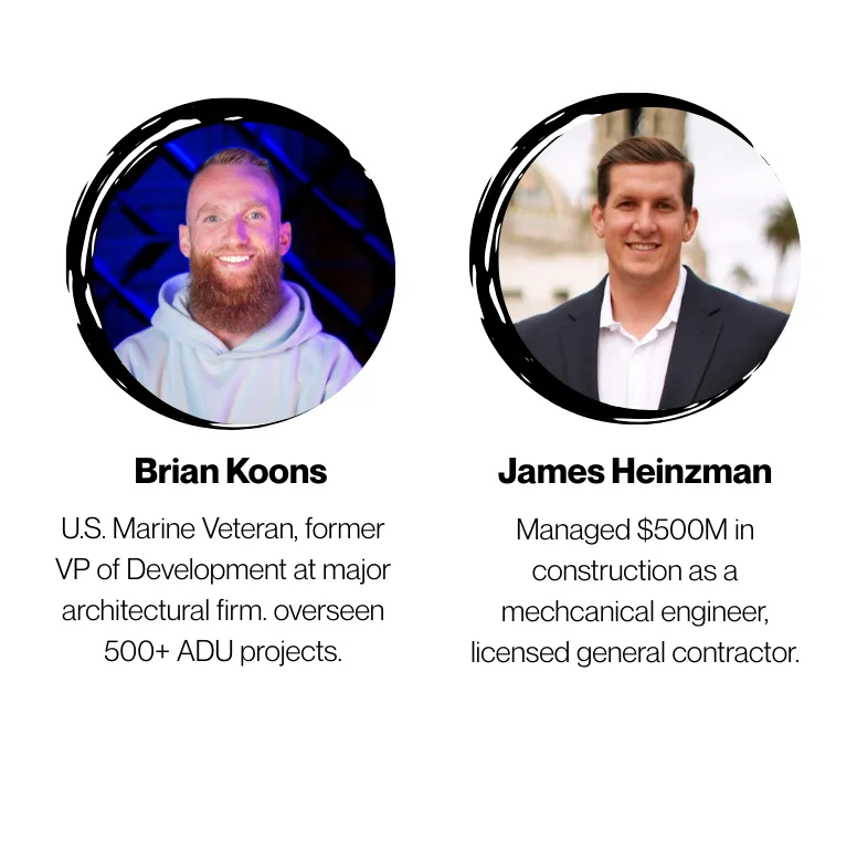 With over a decade of combined expertise and more than $25 million in assets under management, founders Brian Koons and James Heinzman deliver unparalleled leadership in ADU construction management.